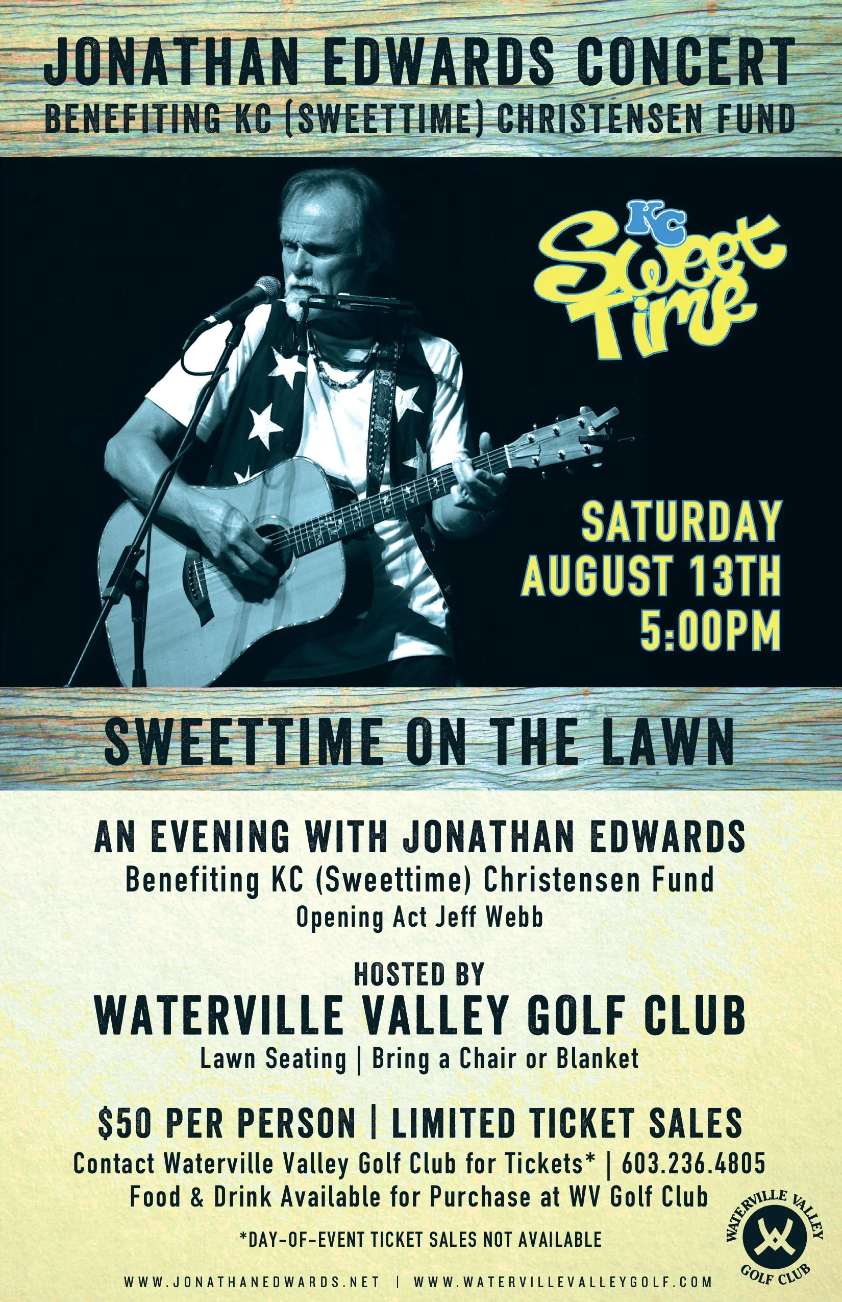 The Waterville Valley Golf Course is hosting a Jonathan Edwards Concert on Saturday, August 13th, beginning at 5pm. Opening act is Waterville Valley Local - Jeff Webb!