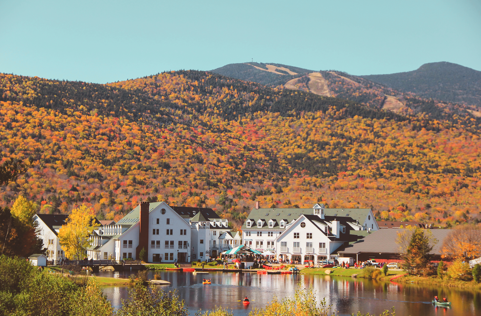Nestled in the heart of the White Mountains, Waterville Valley is the ideal fall getaway for leaf peeping season. Enjoy the vibrant mountainous mosaic of orange, yellow, and red that envelops the valley. Experience fall foliage by hiking one of the five 4,000-foot mountains that surround the Valley, biking through gorgeous National Forest trails, taking a scenic chairlift ride up Snow’s Mountain, playing a round of disc golf, boating on Corcoran Pond, and much more. Plus, Waterville Valley is the ideal location for those interested in exploring further into the White Mountain region. You can easily discover the Lakes Region, Plymouth, and Franconia Notch, including convenient access to the Kancamagus Scenic Byway: one of the Nation's most acclaimed leaf-peeping drives.